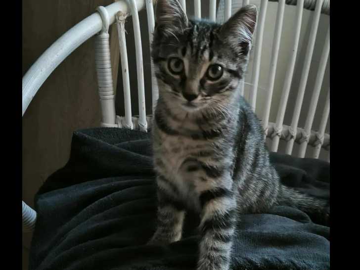 Elle s'appelle Athéna, cette chatonne de couleur tigrée et âgée de trois mois que nous mettons disponible à l'adoption. Celle-ci saura rendre heureuse la famille qui prendra soin d'elle.