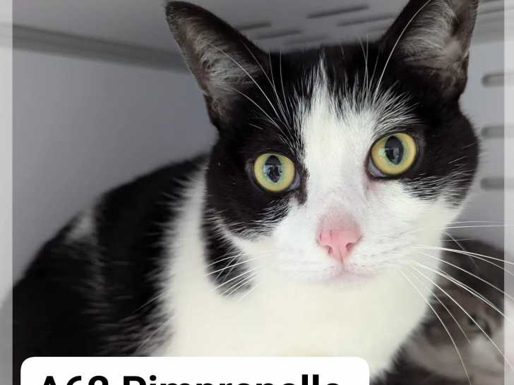 Elle s'appelle Pimprenelle et est âgée de sept ans, cette chatte au pelage noir et blanc que nous vous proposons d'adopter. Cet animal est à la recherche d'une famille conviviale qui lui offrira une vie épanouie.