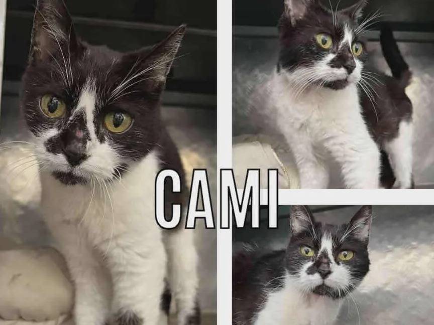 Nous vous proposons d’adopter cette chatte au pelage noir et blanc de sept ans nommée Cami. Elle espère trouver une famille aimante qui lui donnera accès à l'extérieur.