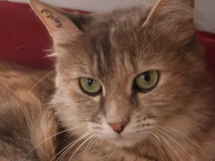 Nous avons le plaisir de vous proposer à l'adoption cette jeune chatte au pelage de couleur écaille de tortue âgée d'un an nommée Câline. Sociable avec ses congénères, elle espère trouver une famille aimante...
