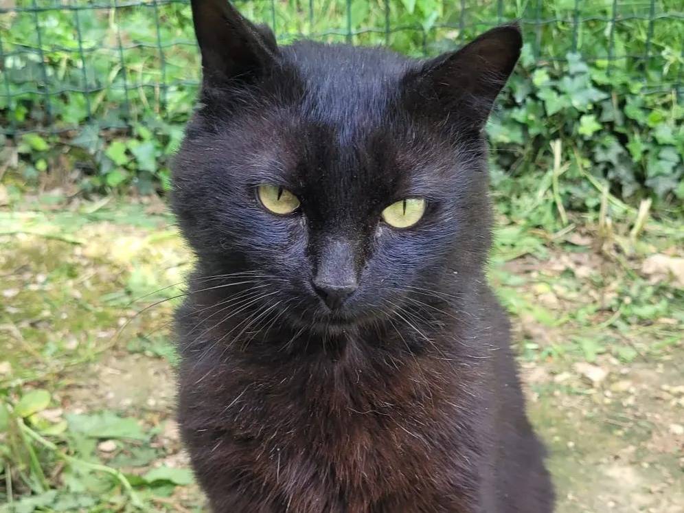 Nous mettons disponible à l'adoption cet adorable chat à la fourrure noire de cinq ans nommé Vigile. Atteint du virus de l'immunodéficience féline, il attend un foyer aimant et sans chats pour une vie heureuse.