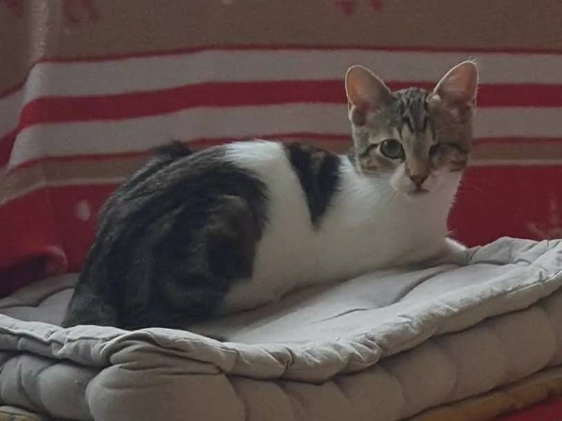 Voici Ariane, une chatonne à la fourrure tigrée blanche de cinq mois que nous sommes enchantés de vous proposer à l'adoption. Sociable avec ses congénères, elle ne doit pas avoir accès à l'extérieur.