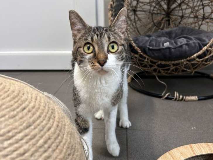 Elle est disponible à l'adoption, ce chaton femelle au pelage tigré blanc de neuf mois nommé Volcane. Sociable avec ses congénères, celle-ci recherche une famille patiente qui saura gagner sa confiance. La...
