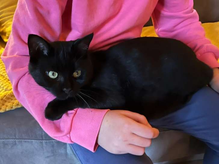 Nous vous offrons l'opportunité d’adopter ce chaton mâle au pelage noir de neuf mois nommé Akagami. Il s'épanouit bien avec les enfants et aura besoin d’avoir accès à l'extérieur.