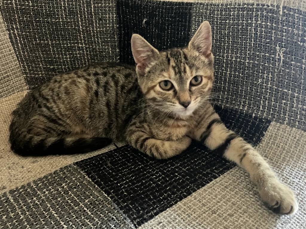 Nous vous offrons l’opportunité d’adopter Judy, un chaton femelle tigré de trois mois. Elle espère trouver un foyer aimant qui prendra soin d’elle.