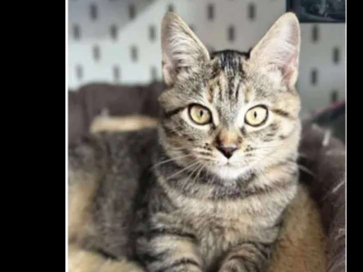 Nous proposons à l'adoption Oups, une chatonne au pelage de couleur tigrée et âgée de cinq ans. Il s’épanouit bien avec ses congénères et peut vivre avec des chiens.