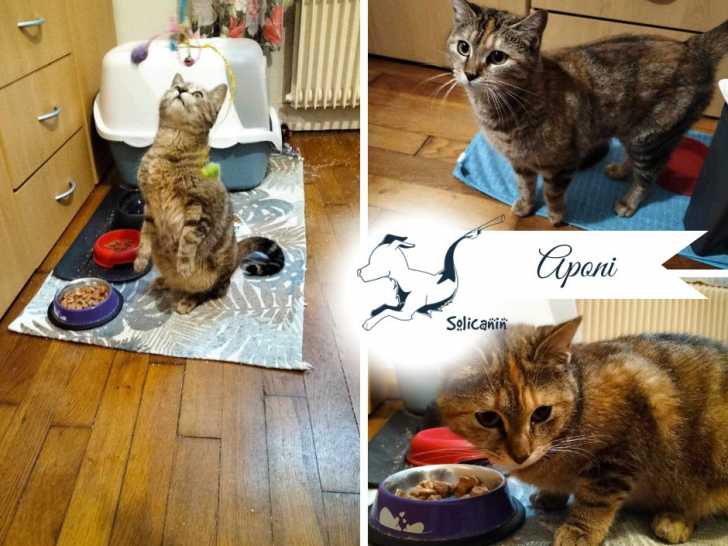 Aponi est une chatte tigrée âgée d’un an qui est à la recherche d'une famille patiente qui saura gagner sa confiance. Elle a une bonne relation avec ses congénères.