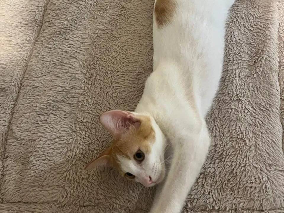 Âgé de sept mois, Coquelicot est un jeune chat de couleur rousse et blanche que nous mettons disponible à l'adoption. Il est câlin, proche de l’humain et s'entend bien avec d’autres animaux domestiques.
