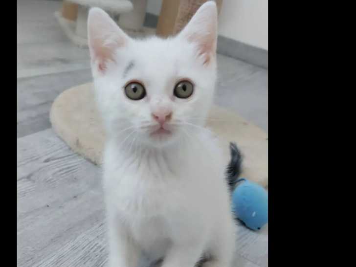 Cette chatonne de couleur blanche nommée Arla est âgée d'un mois. Celle-ci, disponible à l'adoption, recherche une famille aimante qui lui offrira une belle vie.