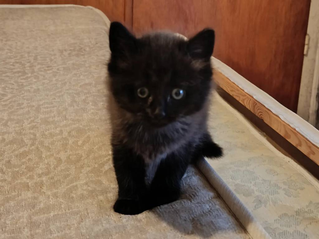 Nous sommes ravis de vous proposer à l'adoption Ange, une chatonne de couleur noire et âgée d'un mois. Disponible à partir de décembre 2025, elle aspire à trouver une famille aimante pour la vie.