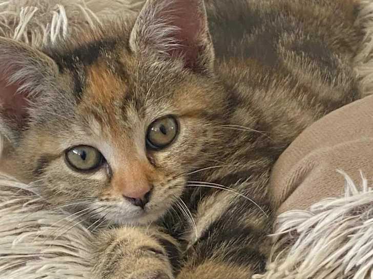 Vera est un chaton femelle à la fourrure tricolore de trois mois que nous avons le plaisir de vous proposer à l'adoption. Elle aspire à trouver une famille bienveillante qui lui offrira amour et tendresse.