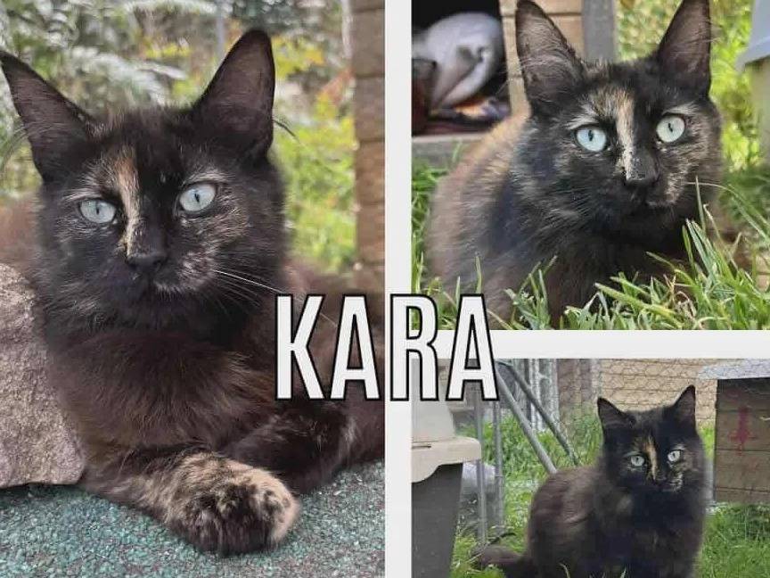 Arborant un pelage de couleur écaille de tortue, Kara est une chatte âgée de trois ans disponible à l'adoption chez nous. Elle s’épanouit bien avec ses congénères, et aura besoin d'un accès à l'extérieur pour s’épanouir.