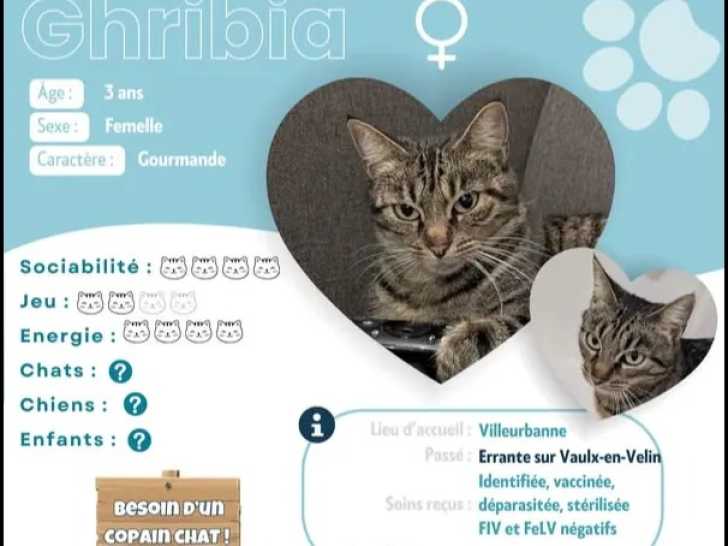 Découvrez Chribia, une chatte tigrée grise de trois ans très sociable et pleine de vie. Elle adore les câlins, est joueuse et ronronne volontiers. Curieuse et dynamique, un extérieur serait un plus et un compagnon félin peut la stimuler au quotidien.
