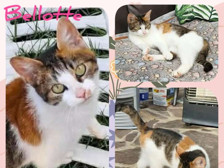 Nous sommes ravis de vous proposer Bellotte, une chatte au pelage tricolore, âgée d'un an. Joueuse et affectueuse, elle aime être au centre de l'attention et s'entend bien avec les chats, mais pas avec les chiens. Un accès à l'extérieur est indispensable à son bien-être.