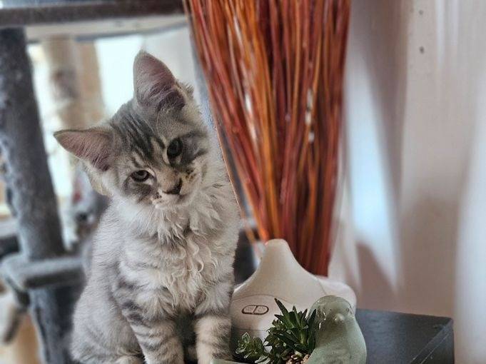 Une magnifique femelle chaton Maine Coon inscrite au Livre Officiel des Origines Félines (LOOF) est disponible à la vente. Elle est née le 3 décembre 2025 et elle sera prête à partir fin février. Nous fixons...