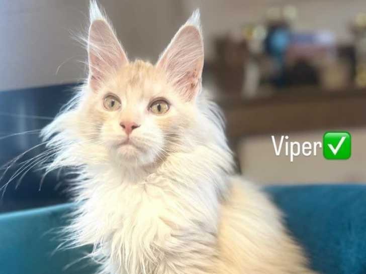 La chatterie Wild Lynx propose à l’adoption Viper, un superbe mâle Maine Coon Red Silver et blanc inscrit au Livre Officiel des Origines Félines (LOOF), né le 26 octobre 2024. Élevé en famille, il est sociabilisé aux bruits du quotidien ainsi qu’aux autres chats et chiens. Ses parents, Diva et Ragnarock, sont testés négatifs pour les maladies génétiques de la race et indemnes par échographie cardiaque et rénale.