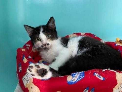 Boléro, née le 15 mai 2021 a dû quitter sa famille pour cause de surnombre avec sa fratrie. Après avoir grandi en famille relais, cette femelle au pelage noir et blanc attend aujourd’hui de trouver un foyer définitif. Malgré un coryza persistant, il reste câlin et s’entend bien avec ses congénères.