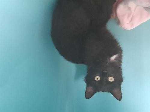 C'est avec plaisir que nous vous proposons à l'adoption ce chaton femelle au pelage noir de quatre mois nommé Beauté. Elle est proche de l'humain et s’entend bien avec d’autres animaux domestiques. No...