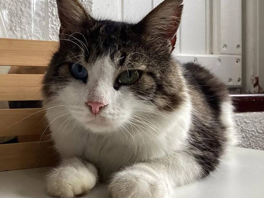 Voici Phoenix, un jeune chat Angora de couleur tigrée blanche et âgé d'un an que nous vous proposons à l'adoption. Il s’entend bien avec ses congénères ainsi qu'avec des enfants.