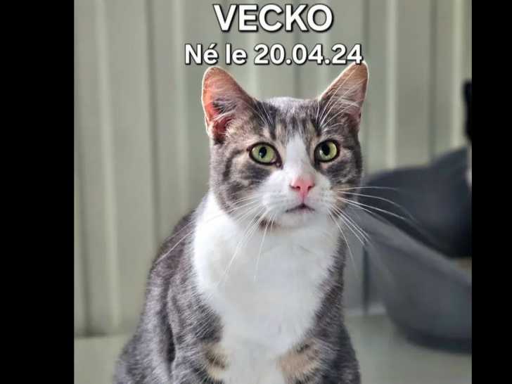 Nous mettons disponible à l'adoption ce jeune chat au pelage tricolore d’un an appelé Vecko. Il est en que d'une famille qui l'aimera.