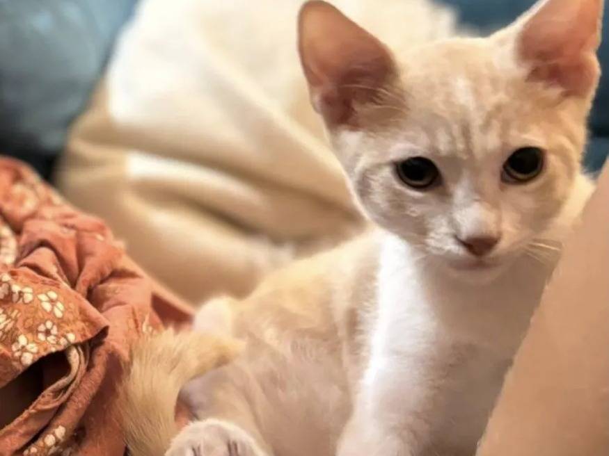 Ce chaton mâle roux et blanc de trois mois s’appelle Abalone. Disponible à l'adoption, il espère trouver une famille aimante qui lui offrira une belle vie.