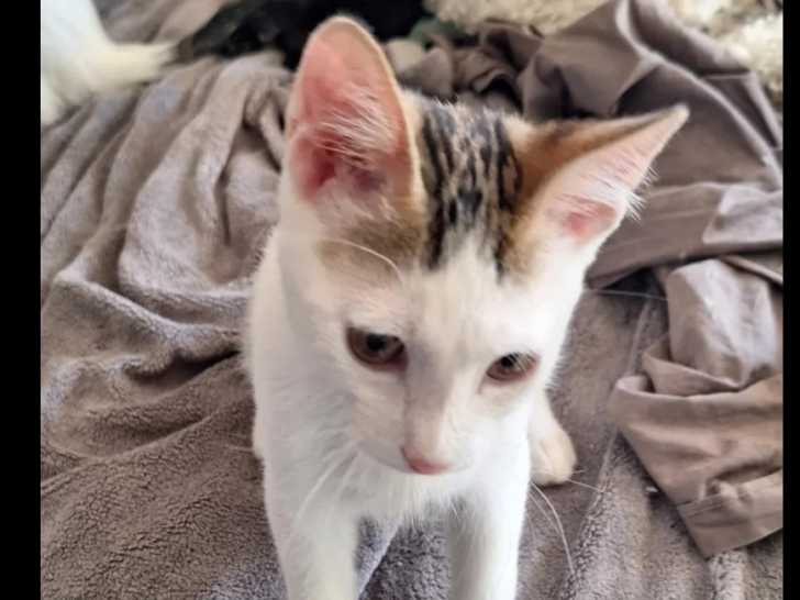 Nous vous présentons Doudou, un chaton mâle tigré blanc de trois mois aspirant à trouver une famille aimante prête à lui offrir une vie épanouie.