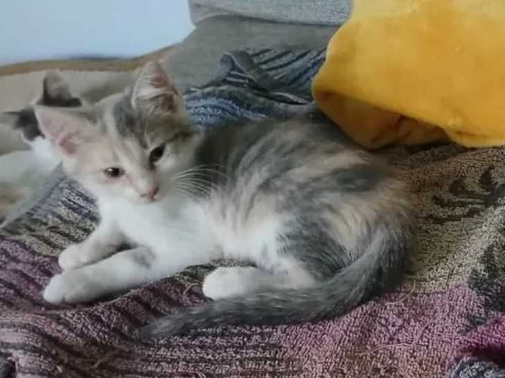 Rosalie est une chatonne de couleur tigrée blanche de trois mois que nous sommes ravis de vous proposer à l'adoption. Elle est amicale avec tout le monde.