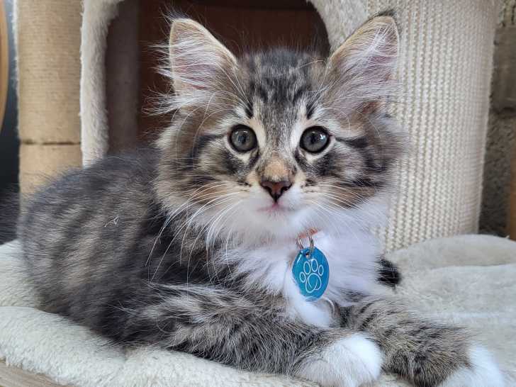 Notre portée de cinq chatons Norvégiens, nés le 6 août 2025 et inscrits au Livre Officiel des Origines Félines (LOOF), présente des couleurs variées. Ils sont élevés en famille et manipulés dès leur plus jeune...