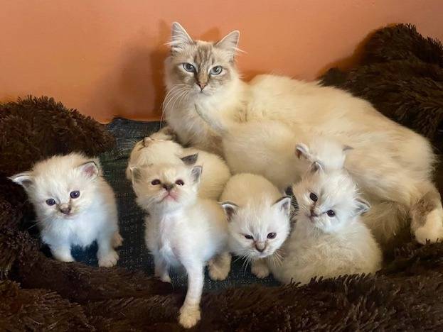 La chatterie du Palais du Chat a le plaisir de vous annoncer qu’une nouvelle portée de 6 chatons de race Sacré de Birmanie est née le 21 octobre dernier. Les parents, Zella aux Perles de coton et Ramsès de Chaterley, ont été dépistés négativement pour la PKD, le FIV et le FeLV. Ils sont visibles à la Chatterie.