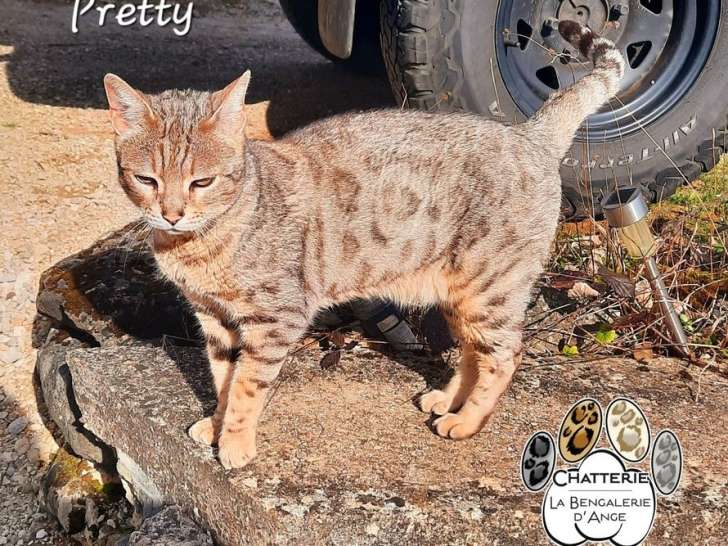 La chatterie la bengalerie d'ange vous présente Pretty de la forêt de Nawala, une femelle Bengal retraitée née le 23 janvier 2019. Âgée de 7 ans mais en pleine forme, elle est très active, joueuse, câline et pot de colle, un véritable chat chien au caractère attachant.