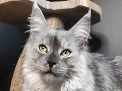Sky, une adorable femelle Maine Coon bleu et blanc née le 30 mars 2021, recherche une famille calme et aimante pour une retraite bien méritée. Douce et habituée à l'humain, elle apprécie les moments de...