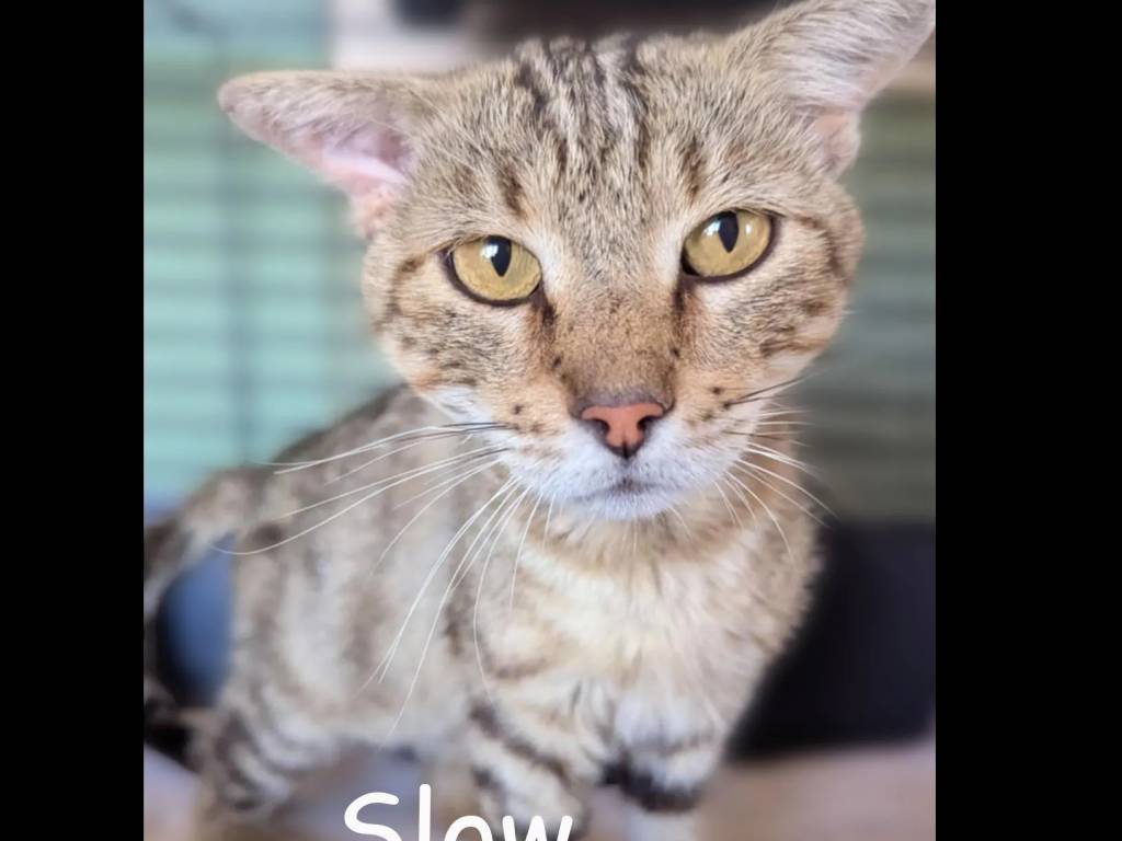 Notre refuge vous propose à l'adoption ce chat au pelage tigré de deux ans nommé Slow. Il espère trouver une famille aimante pour la vie.