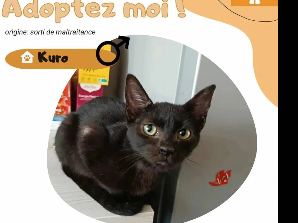Il s'appelle Kuro, ce jeune chat American Wirehair au pelage noir et âgé d’un an que nous proposons à l'adoption. Cet animal, énergique, espère trouver une famille aimante pour la vie.