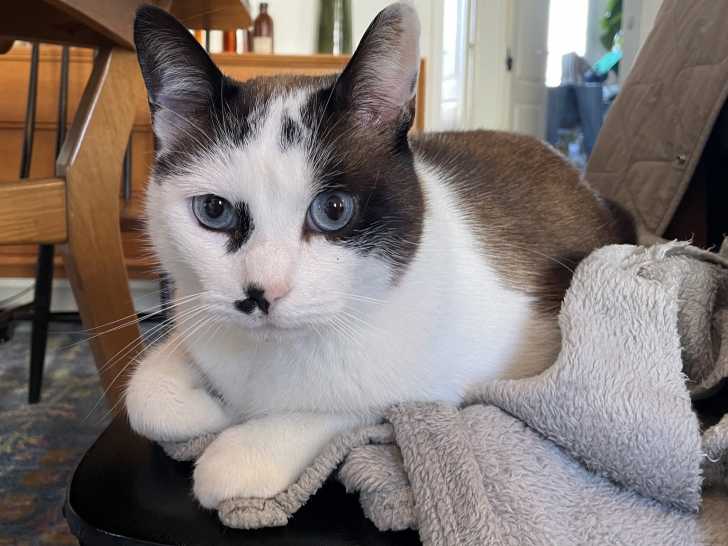 Son nom, c’est Canaille, ce chat seal point âgé de cinq ans que nous vous proposons d’adopter. Ce dernier n’aime pas rester avec des enfants.
