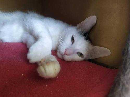 Cette chatte nous est parvenue de la fourrière avec ses petits qu’elle a soutenus et qui sont maintenant indépendants. Elle se relâche juste et il faudra un peu plus de temps pour qu’elle accepte de se faire câliner. Nous recommandons un foyer calme et aimant pour elle.