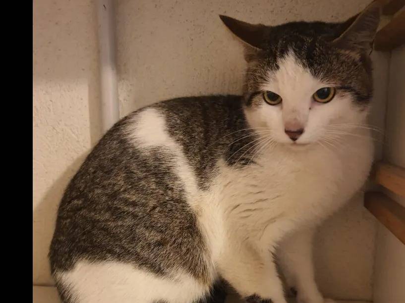 De couleur grise et blanche, Choupchoup est un jeune chat âgé de deux ans que nous mettons disponible à l'adoption. Il attend un foyer calme avec un jardin, qui saura gagner sa confiance.