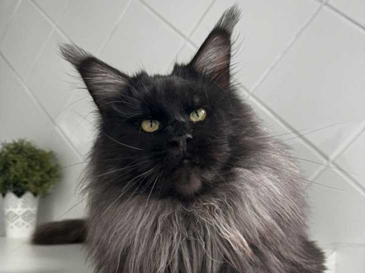 Nous proposons notre chat adulte mâle Maine Coon de couleur noir fumé nommé Seiko du Maine Street Coon à la saillie. Champion de France, ce mâle né le 19 juin 2021 et pesant 9,5 kg a grandi à la maison où il ne détruit rien. De plus, c’est un reproducteur expérimenté qui a déjà engendré plusieurs magnifiques chatons.