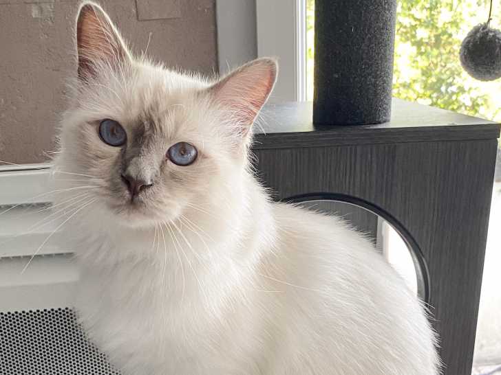 Temeio, né Toulouse, recherche une partenaire pour saillie. C'est un Sacré de Birmanie de couleur lilac point (SBI c), inscrit au LOOF sous le numéro 2022.60188. C'est le fils de Sweetie de Guelandre et de Nougat de Ker Myan.