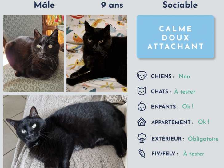 Twist, un chat noir âgé de neuf ans, recherche une famille qui lui offrira tout l'amour qu'il mérite. Il s’épanouirait bien dans un foyer qui possède un jardin et qui n’a pas de chiens.