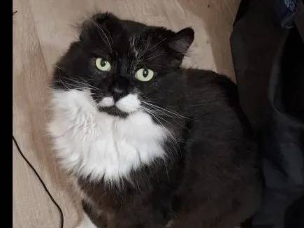 C'est avec plaisir que nous vous proposons à l'adoption ce chat noir avec marque blanche de sept ans nommé Raoul. Il est porteur du virus de l'immunodéficience féline.