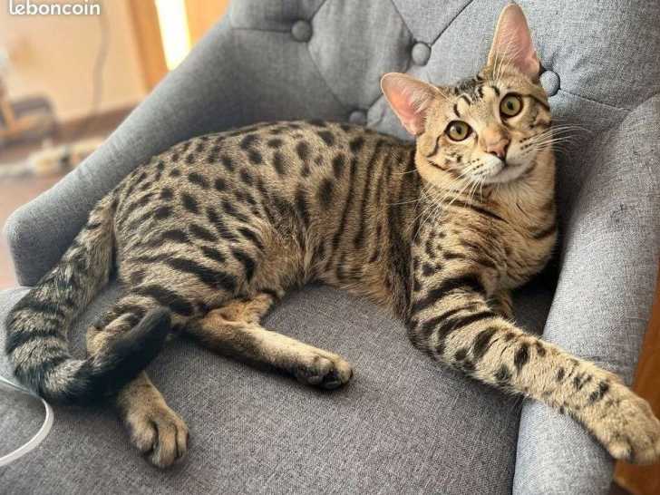 Nous avons un chat Savannah, inscrit au Livre Officiel des Origines Félines (LOOF), qui est disponible pour des saillies : c’est un très bon reproducteur. Il est en parfaite santé et déclaré sain pour la déficience en pyruvate kinase (PKDEF) ainsi que pour le virus de l’immunodéficience féline (FIV).