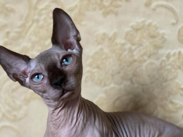 Un très beau et hyper rare chat Sphynx Bambino (avec des courtes pattes) mâle né le 15/10/24, de couleur noire aux yeux bleus, est à vendre.
