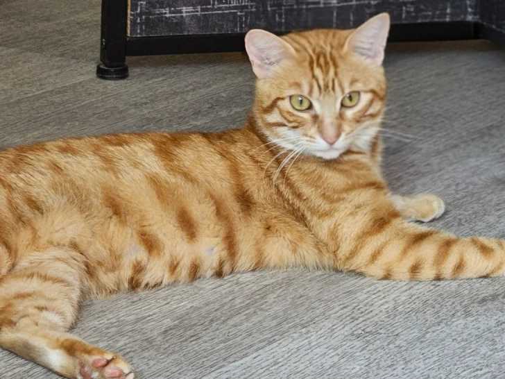 Nous vous présentons Mastoc, un chat au pelage tigré roux de trois ans que nous vous proposons à l'adoption. Il espère trouver une famille bienveillante pour une vie épanouie.