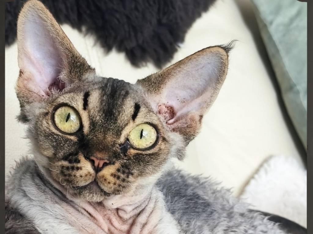 Un adorable petit mâle, joueur, affectueux et câlin, tout comme un vrai Devon Rex.
