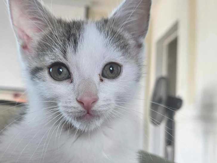 Nous mettons disponible à l'adoption Aneth, ce chaton au pelage gris et blanc de deux mois. Proche de l'humain, elle espère trouver une famille qui lui offrira une vie épanouie.