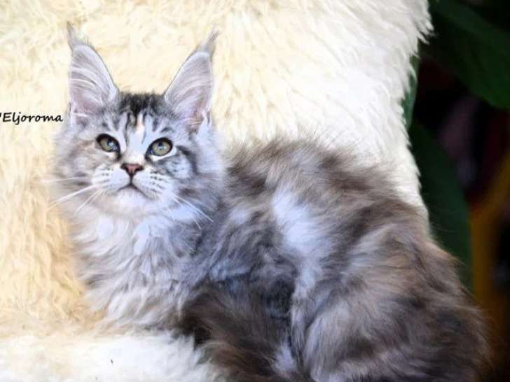 La chatterie d'Eljoroma présente Boss Lady d'Eljoroma, un chaton femelle Maine Coon née le 12 janvier 2026, arborant une robe black tortie mackerel tabby. Elle est disponible à la réservation et rejoindra sa nouvelle famille environ dix jours après confirmation de celle-ci.