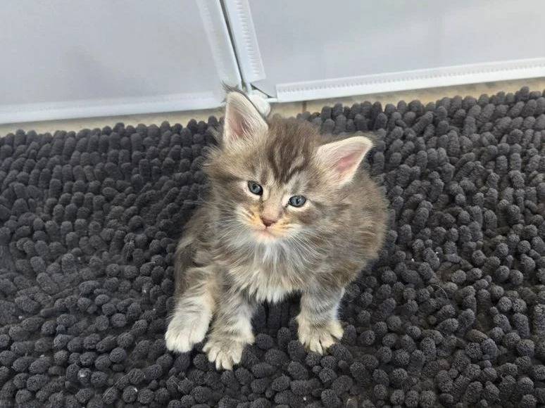 L'élevage Des Coons De L'Ouanne propose à la réservation une chaton femelle Maine Coon née le 24 mars 2026. Elle est inscrite au Livre Officiel des Origines Félines (LOOF) et affiche une belle robe bleu silver blotched tabby.