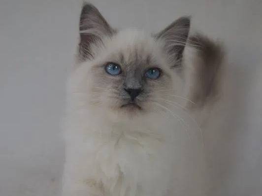 Apolline des Brumes d'élégance est une chatonne Ragdoll pleine de douceur et d'affection. Elle grandit dans un environnement stimulant et apprend à interagir avec les humains.