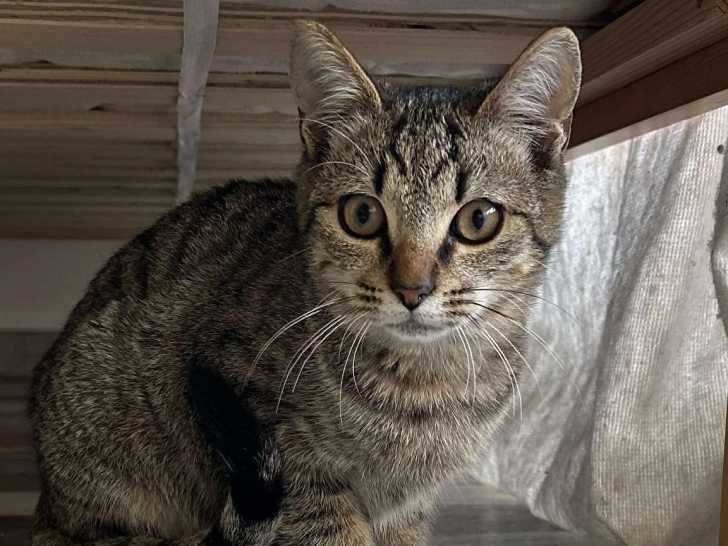 Voici Arlo, un jeune chat au pelage tigré de six mois proposé à l’adoption par notre refuge. Il aspire à trouver une famille aimante qui lui offrira une belle vie.
