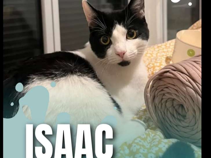Découvrez Isaac, un adorable chaton mâle noir et blanc d’environ six mois, joueur et tendre, qui s’entend avec les chats et des enfants calmes. Il recherche une famille aimante pour la vie.